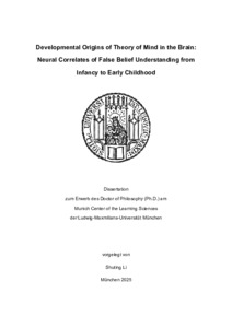 | Li, Shuting (2025): Developmental origins of theory of mind in the brain: neural correlates of false belief understanding from infancy to early childhood. Dissertation, LMU München: Fakultät für Psychologie und Pädagogik |