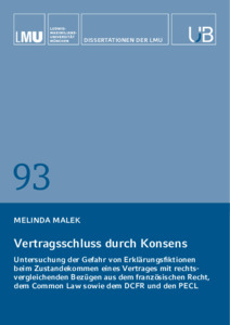A person is not always aware that their actions may result in a contractual obligation, and this effect is not always the person's intention. The problem of such fictitious contractual declarations arises at the time the contract is concluded and in the case of contract amendments and clauses available after the conclusion of a contract. This paper examines the formation of contracts under German law, French law, English and US law, and under the European model laws as laid down in the Draft Common Frame of Reference (DCFR) and the Principles of European Contract Law (PECL). It examines approaches in the technique of contract formation that counteract fictitious contractual declarations. Melinda Malek studied law at Ludwig-Maximilians-Universität in Munich, with semesters abroad in Finland and the USA. She is currently a legal trainee (Rechtsreferendarin) at the Munich Higher Regional Court (OLG München).
