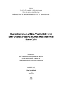 | Bendeliani, Nina (2025): Characterization of non-virally delivered BMP overexpressing human mesenchymal stem cells. Dissertation, LMU München: Medizinische Fakultät |