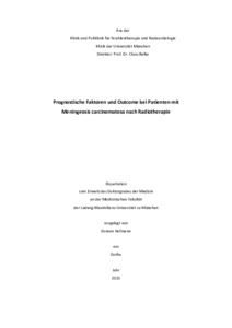 | Hofmann, Doreen (2025): Prognostische Faktoren und Outcome bei Patienten mit Meningeosis carcinomatosa nach Radiotherapie. Dissertation, LMU München: Medizinische Fakultät |
