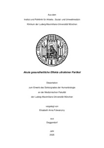 | Folwarczny, Elisabeth (2025): Akute gesundheitliche Effekte ultrafeiner Partikel. Dissertation, LMU München: Medizinische Fakultät |