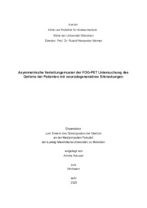 | Kreuzer, Annika (2025): Asymmetrische Verteilungsmuster der FDG-PET Untersuchung des Gehirns bei Patienten mit neurodegenerativen Erkrankungen. Dissertation, LMU München: Medizinische Fakultät |