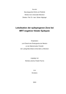 | Fearns, Nicholas Jeremy Amadé (2025): Lokalisation der epileptogenen Zone bei MRT-negativer fokaler Epilepsie. Dissertation, LMU München: Medizinische Fakultät |