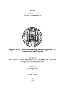 | Shugaa Addin, Nuha (2025): Magnesium and cardiovascular-kidney-metabolic syndrome: an epidemiological perspective. Dissertation, LMU München: Medizinische Fakultät |