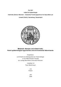 | Niedermayer, Fiona (2026): Metabolic diseases and related traits: novel epidemiological approaches and environmental determinants. Dissertation, LMU München: Medizinische Fakultät |