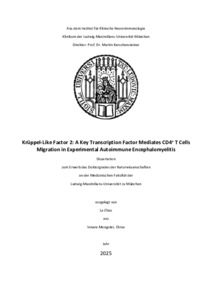 | Zhuo, La (2026): Krüppel-like factor 2: a key transcription factor mediates CD4+ T cells migration in experimental autoimmune encephalomyelitis. Dissertation, LMU München: Medizinische Fakultät |