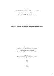 | Litviakov, Marie-France (2025): Heinrich Frenkel: Begründer der Neurorehabilitation. Dissertation, LMU München: Medizinische Fakultät |