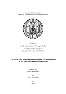 | Sponheimer, Monika (2026): TNF-α and IFN-γ differentially regulate AML cell susceptibility to CD70-antibody-mediated cytotoxicity. Dissertation, LMU München: Medizinische Fakultät |