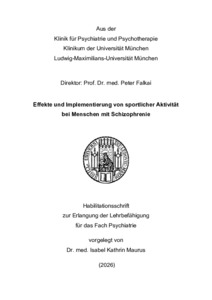 | Maurus, Isabel (2026): Effekte und Implementierung von sportlicher Aktivität bei Menschen mit Schizophrenie. Habilitationsschrift, LMU München: Medizinische Fakultät |