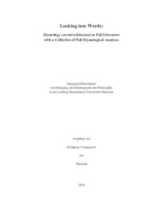 | Vongagsorn, Kittipong (2026): Looking into words: etymology (nirutti/nibbacana) in Pali literature with a collection of Pali etymological analyses. Dissertation, LMU München: Fakultät für Kulturwissenschaften |
