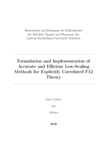 | Urban, Lars (2026): Formulation and implementation of accurate and efficient low-scaling methods for explicitly correlated F12 theory. Dissertation, LMU München: Fakultät für Chemie und Pharmazie |