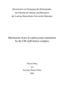 | Hong, Xiaoyu (2026): Mechanism of pro-β-carboxysome maturation by the CM-ApN hetero-complex. Dissertation, LMU München: Fakultät für Chemie und Pharmazie |