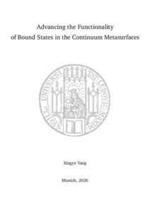 | Yang, Xingye (2026): Advancing the functionality of bound states in the continuum metasurfaces. Dissertation, LMU München: Fakultät für Physik |
